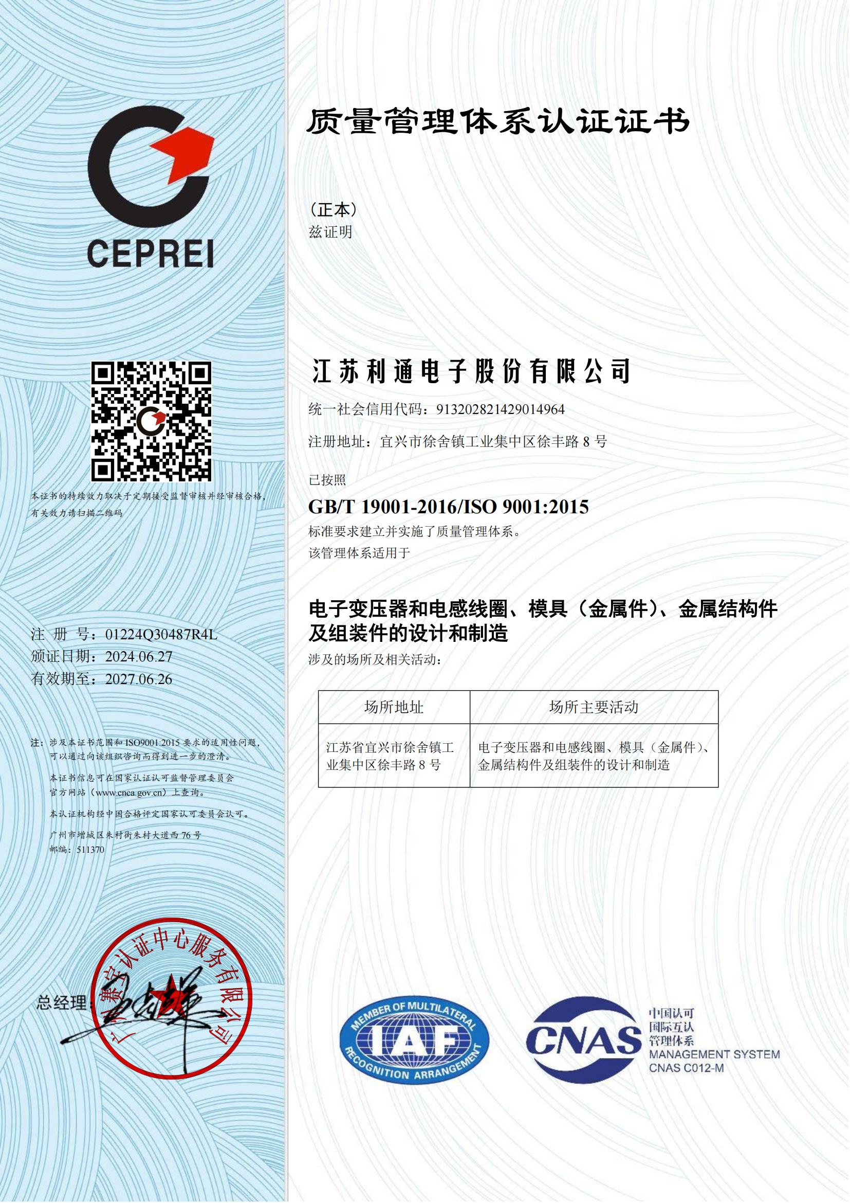ISO 19001 質(zhì)量管理體系認(rèn)證證書